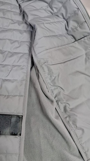 Para maiorrespirabilidadee maiorliberdadeem seus movimentos, embaixo dos braços a jaqueta possuipainéis lateraisem fleece comstretch.Além disso, possui aindaacabamento resistente à água não fluorado(non-PFC DWR) para maiorproteção.