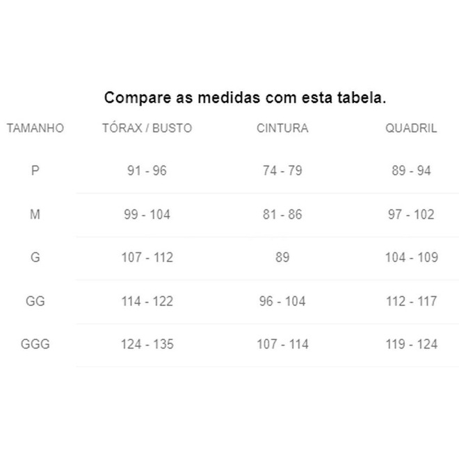 Tamanho    |    Cintura    |    Quadril    |    Peito