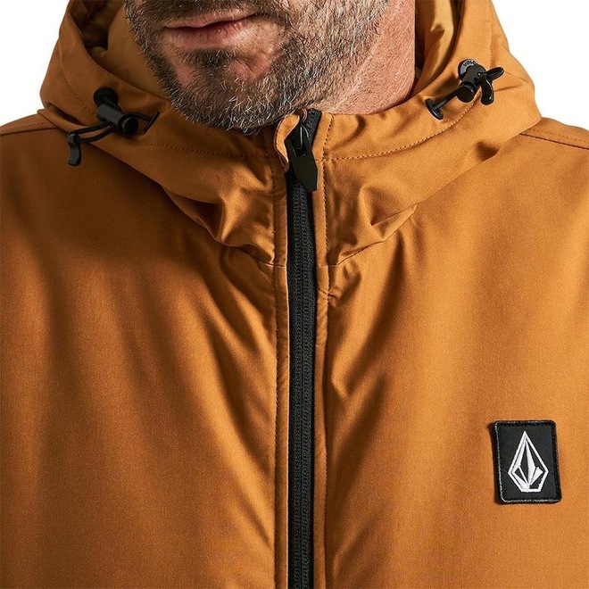 Jaqueta pesada com capuz Volcom importada em modelagem regular, forro interno em matelassê, patch bordado frontal, punho e barra com elástico, fechamento em zíper contrastante e etiquetas personalizadas.