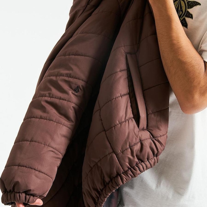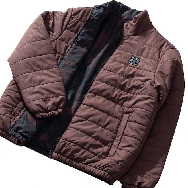 Jaqueta Volcom feita em modelagem regular, dupla face, patch Circle Stone frontal, punho e barra com elástico e bolso imbutido.