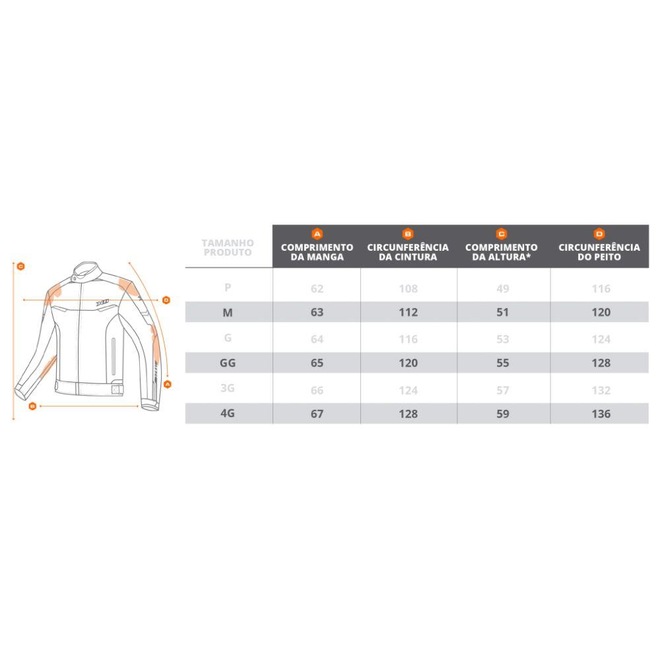 Altura: 1,78m | Peso: 104kg - Tamanho: 4G.