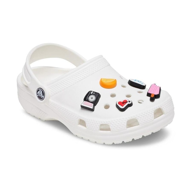 adicione os encantos dos jibbitz charms aos seus crocs para mostrar que seu estilo e criatividade são únicos! de personagens conhecidos a emojis populares.