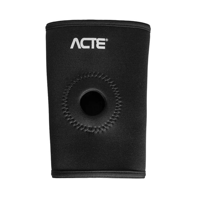 Nome: Joelheira Acte Ortopédica com Orifício e reforço Patelar Gênero: Unissex Indicado para: Uso ortopédico Composição: 70% Policloropreno, 30% Poliamida Medidas: P: 35cm-38cm