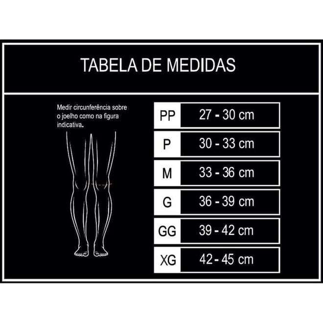 Obs.: Com o joelho esticado, meça com uma fita métrica a circunferência central do seu joelho.
