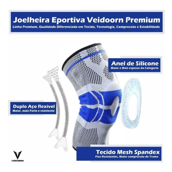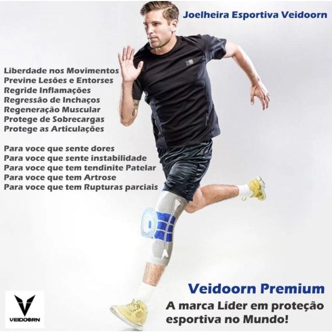 JOELHEIRA VEIDOORN PREMIUM ESPORTIVA ORTOPÉDICA DE COMPRESSÃO, FLEXIBILIDADE E ESTABILIDADE