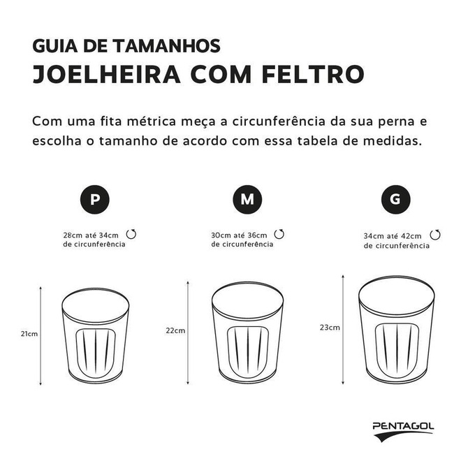 Joelheira Elástica com Feltro Pentagol. Oferece proteção para região dos joelhos, reduzindo o risco lesões. Ideal para a prática de esportes O produto proporciona conforto nas flexões e nos movimentos, além de possuir formato anatômico para estabilizar perfeitamente durante sua utilização nos joelhos.