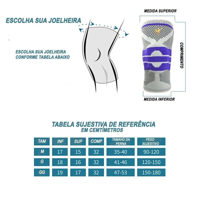 Sobre este item Joelheira Elástica Gold Sports de Compressão com Suporte Lateral e Rótula