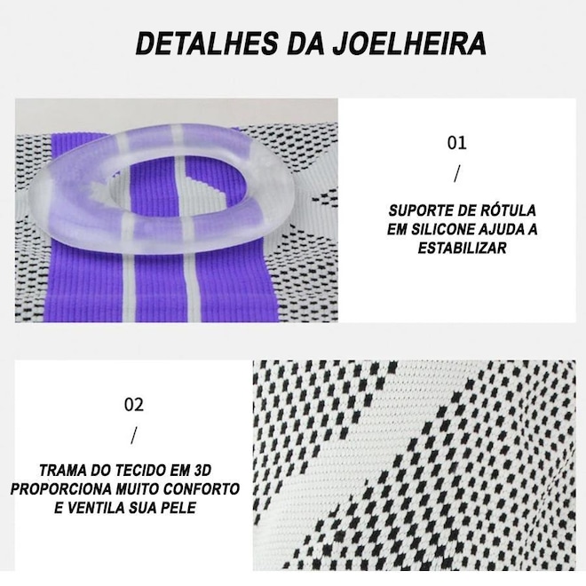 Aplicação: dor no joelho, desconforto, leve tensão/entorse, fadiga articular, manter o joelho quente, reabilitação após a lesão