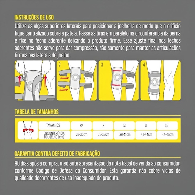 - Detalhamento: Possui articulações metálicas laterais com trava, que garantem estabilidade ao joelho e evitam a hiperextensão. Pode ser utilizada para limitar a flexão do joelho por meio da inversão das dobradiças. O fechamento duplo em velcro assegura maior firmeza e ajuste eficiente. Indicada para prevenção e recuperação de lesões no joelho, como condromalácia, entorses, edemas, distensões, contusões, tendinites, luxações, instabilidade da patela, instabilidade rotatória, artrose, artrite reumatoide, lesões ligamentares e no pós-artroscopia. Após a retirada de imobilizações, auxilia no processo de reabilitação;