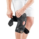 Instruções de Uso: Solte todos os fechos aderentes e abra as abas. Com a perna estendida, posicione a Joelheira Relieve de forma que a patela fique centralizada no orifício do produto. Ajuste primeiro as abas de fechamento principal, de forma que o produto ofereça compressão e fique confortável. Depois fixe os ajustes extra patelar. Os dois de cima puxe para cima na diagonal em que ele está direcionado. Os dois de baixo fixe para baixo na diagonal em que eles estão direcionados. Quanto mais esticados estiverem, melhor será o posicionamento na patela. Por fim, ajuste os fechos de contato e elásticos em torno da coxa e o outro em torno da panturrilha. Composição:85% borracha de cloropreno com poliamida, 10% poliéster com látex e 5% hastes em aço flexíveis. Produto Unissex - Conteúdo da Embalagem - 1 Unidade.