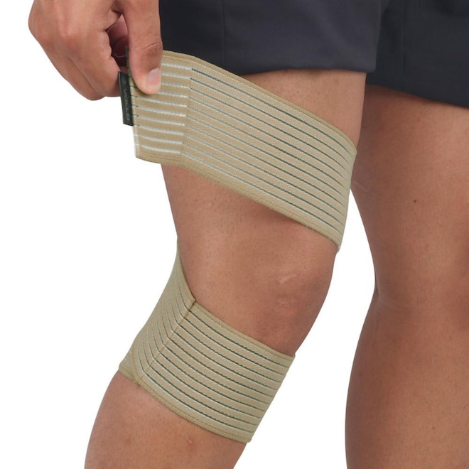- Detalhamento: Contém 1 faixa de aproximadamente 50 x 7,5 x 1cm, com peso aproximado de 20g, laços fixadores para qualquer tamanho, material macio e elástico, adequada para todos os tipos de esportes, eficaz para entorses, torções e outras lesões esportivas;