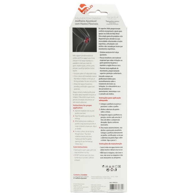Conheça as características da Joelheira Vollo Neoprene Ajustável com Hastes Flexíveis Preta