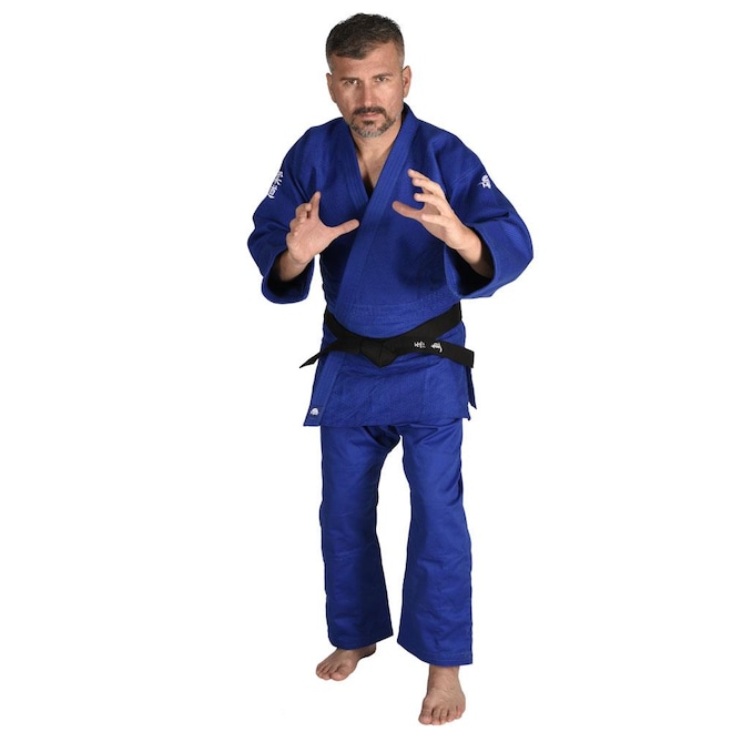 O modelo Jisseki é composto por Blusão tecido trançado, 75:25 algodão/poliéster, gramatura de 730 grs/m2 podendo variar em +/-10 gramas, possui múltiplos reforços, bordado nos dois braços e etiqueta com logo MKS no final da gola. Calça em tecido sarja com reforço no joelho gramatura de 280 gr/m2 podendo variar em +/-10 gramas indicado para treinamento e competição.