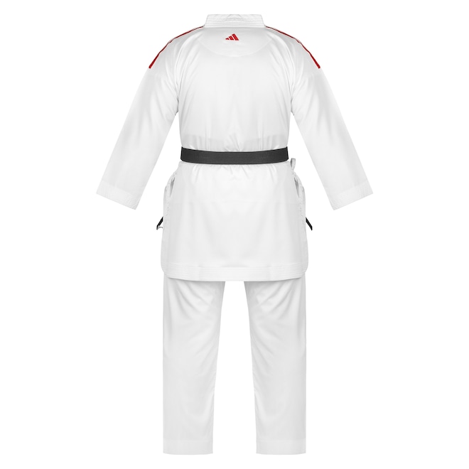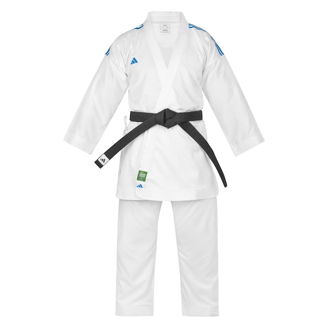 Novo corte slim fit, Projetado para melhorar a velocidade e a precisão dos movimentos, Aprovado pela WKF, para competição e treinamento regular com Selo Verde, Kit composto por blusão com com listras azuis e vermelhas obrigatórias para todos os praticantes da WKF desde 2024