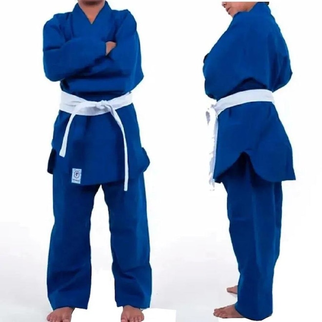 Abertura das laterais em ''V'' e toda parte interna da barra do Blusão possui o acabamento duplo tecido, que propicia um visual mais agradável e também influi na durabilidade do kimono. Calça (Shita-baki) em tecido de brim, regulagem através de elástico embutido em todo o perímetro da cintura mais cordão tipo cadarço roliço na cor branca, e diferencial do cavalo ampliado, que permite maior mobilidade dos membros inferiores, e portanto melhor performance ao atleta.