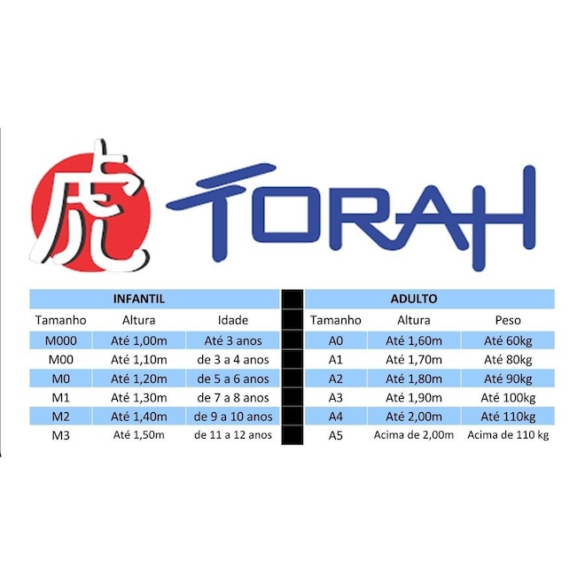 Tamanhos: A1 de 1,61 até 1,70 metros A2 de 1,71 até 1,80 metros A3 de 1,81 até 1,90 metros A4 de 1,91 até 2,00 metros Itens Inclusos: 1 Paletó/Kimono + 1 Calça em sarja de alta durabilidade reforçada + 1 Faixa inicial.