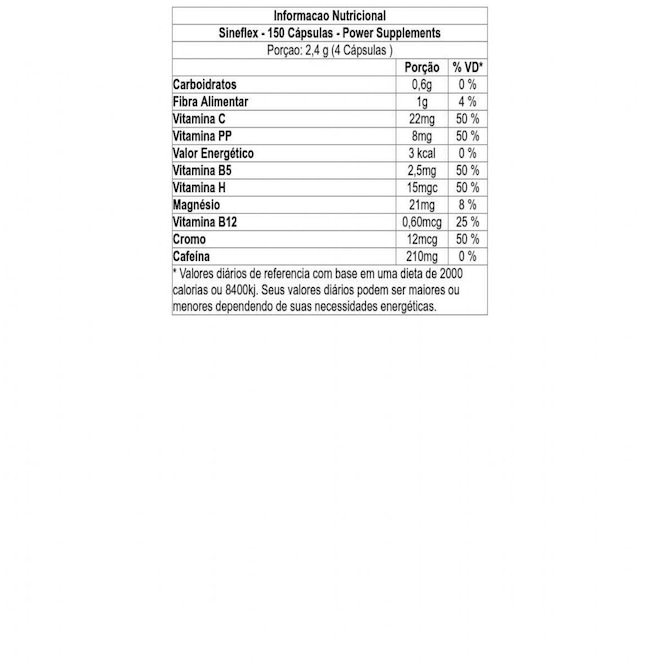 Tabela Nutricional - Sineflex - 150 Cápsulas - Power Supplements.