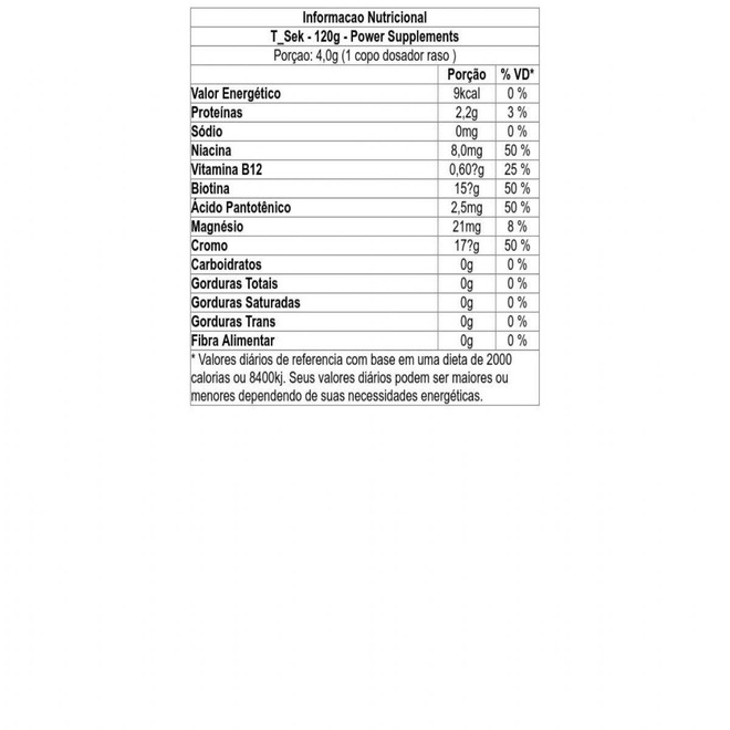 Tabela Nutricional - T_Sek - 120g - Power Supplements.