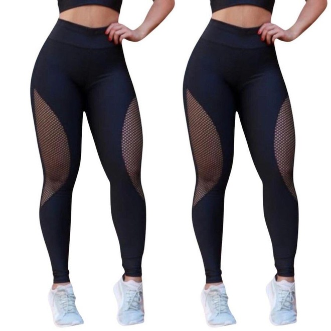 Calça Arrastão Legging Belmento Detalhe Rede Academia Fitness Suplex - Feminina - 2 Unidades