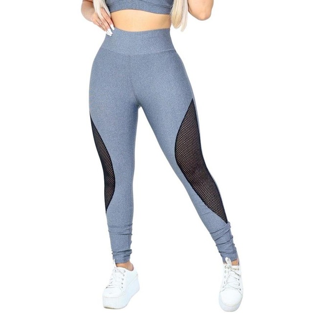 Calça Arrastão Legging Belmento Detalhe Rede Academia Fitness Suplex - Feminina - 2 Unidades