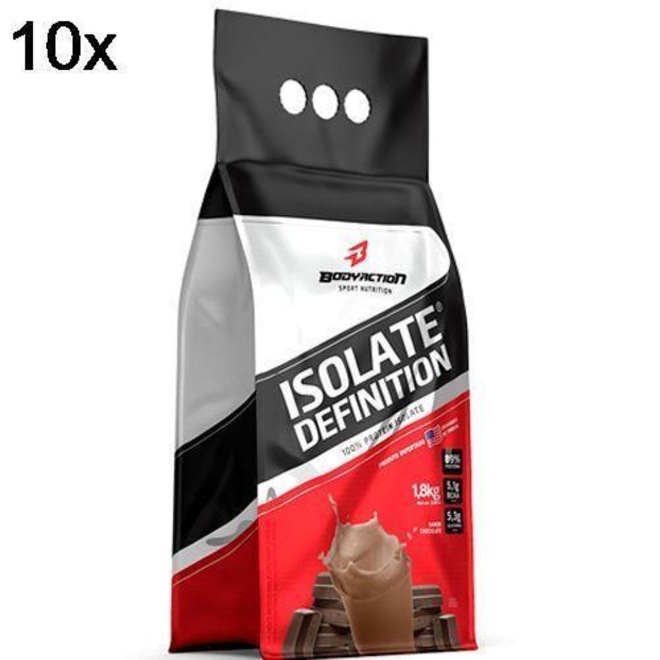 Kit/Combo composto dos seguintes produtos:10 - Whey Isolate Definition - 1800g Refil Chocolate - BodyActionDescrição - Whey Isolate Definition - 1800g Refil Chocolate - BodyActionFórmula de design proteico estrategicamente projetada para atender de maneira eficiente as necessidades de atletas que buscam a construção e a definição muscular através das mais nobres proteínas isoladas.