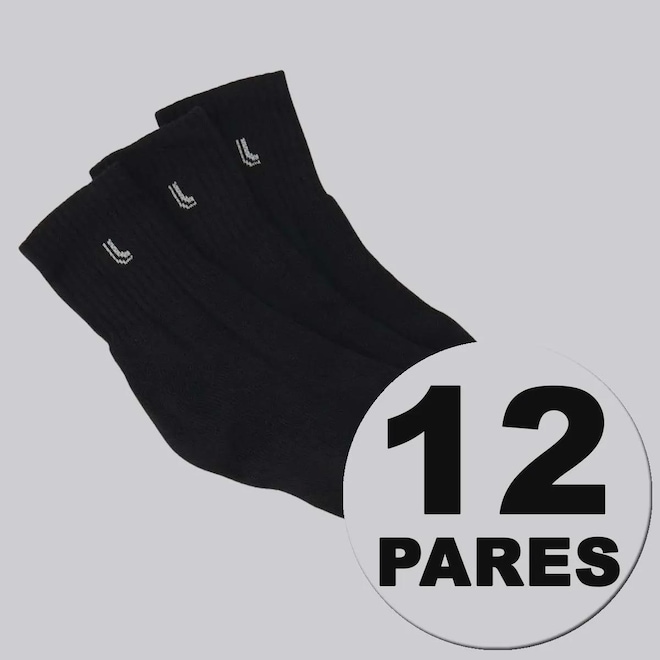 Composição: 65% Algodão, 34% Poliamida, 01% Elastano Contém: 12 pares na cor preta Indicado para: Casual Origem: Nacional Cano: Médio