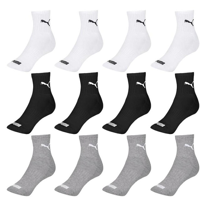 Com o Kit 12 Pares de Meia Cano Médio Puma Esportiva, você garante o conforto durante os treinos e práticas de atividades físicas. Desenvolvida com a leveza do algodão e elasticidade da poliamida, as peças possuem toque macio, reforço no calcanhar e na ponta, oferecendo alta durabilidade e melhor ventilação. Traz logo da marca em contraste no tornozelo, e elástico central para ajuste perfeito aos pés. Medidas aproximadas cm: 34-39: 17x11 (Comprimento do Pé x Largura).ref: M13AP4