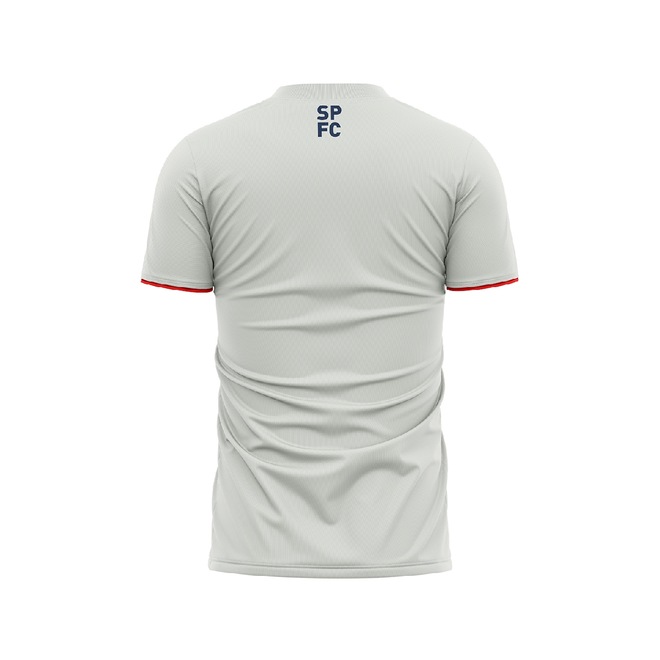 A camisa São Paulo Mistura é predominantemente cinza, com detalhes elegantes em vermelho e dourado. A gola é vermelha, acompanhada por bordas das mangas que também possuem uma linha fina dourada, criando um contraste marcante. O escudo, localizado no lado esquerdo do peito. A camisa do São Paulo é a pedida certa para os torcedores vestirem sua paixão pelo Tricolor Paulista.