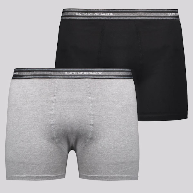 Composição cueca cinza mescla: 85% Algodão, 10% Poliéster e 05% Elastano Composição cueca preta: 95% Algodão e 05% Elastano Contém: 02 cuecas, sendo uma preta e uma cinza Indicado para: Casual Gênero: Masculino Origem: Nacional Ajuste: Elástico Dimensões aproximadas (A x L): P: 26 x 33 cm M: 28 x 35 cm G: 30 x 37 cm GG: 32 x 39 cm