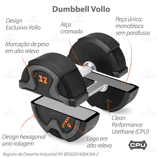 Não é atoa que é um dos mais procurados! O Halter Dumbell Vollo é o equipamento ideal para alcançar grandes objetivos no treino, de forma segura e confortável. Produzido com materiais de alta durabilidade, o halter conta com estrutura antiderrapante e anti-rolagem, garantindo que o equipamento permaneça no lugar e não role na superfície durante a pausa dos exercícios. Além de reduzir o ruído, assim como os danos ao piso, provocados pela queda dos halteres no chão.