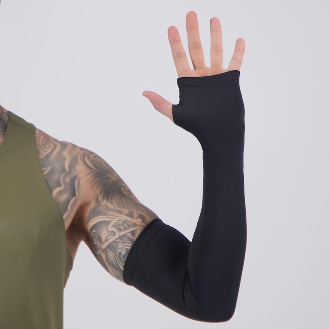 Tecnologias SunDry: Protege a pele da ação dos raios solares, gerando conforto e proteção UV50+ durante a prática esportiva, além de secagem rápida. REFLETIVO: Tecnologia com propriedades refletivas que aumentam a visibilidade e trazem mais segurança para a sua corrida noturna ou em locais com pouca iluminação. Composição: 91% Poliamida e 09% Elastano Cor predominante: Preta Indicado para: Treino Origem: Nacional Gênero: Unissex Logo: Estampada Contém: 02 Pares Dimensões aproximadas (A x L): P: 47 x 10 cm M: 49 x 12 cm G: 51 x 14 cm GG: 53 x 16 cm