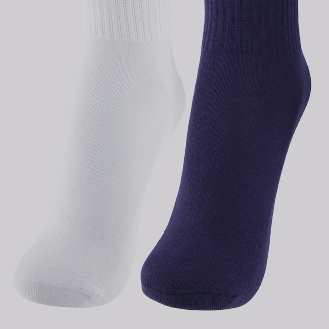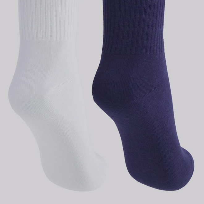 Composição: 57% Algodão, 31% Poliamida, 09% Poliéster e 03% Elastano Cor predominante: Branca e Marinho Contém: 02 pares Origem: Nacional Gênero: Unissex Cano: Alto