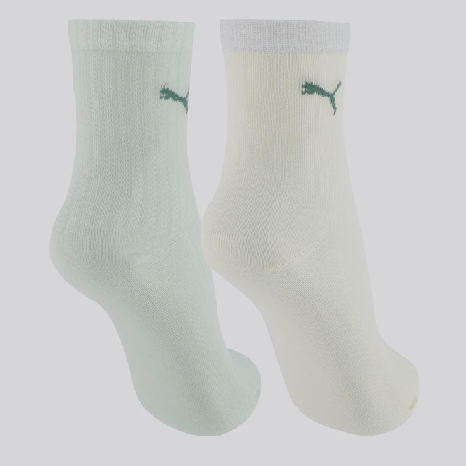Composição: 68% Algodão, 27% Poliamida, 03% Elastano e 02% Outras Fibras Contém: 01 par na cor verde e 01 par na cor off white Indicado para: Casual Origem: Nacional Gênero: Feminino Cano: Médio Tamanho único: (34-39)