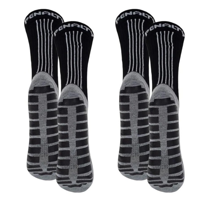 O Kit 2 Pares de Meias Penalty Grip Masculina é perfeito para quem busca conforto e desempenho nos jogos de futebol.Ameia deste kitt foi confeccionada com uma composição de poliéster e poliamida, ela é resistente e durável, garantindo uma alta perf