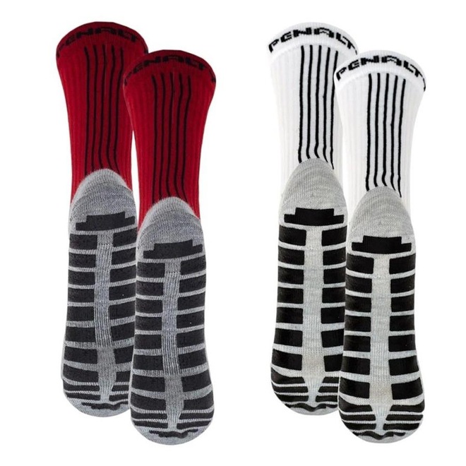 O Kit 2 Pares de Meias Penalty Grip Masculina é perfeito para quem busca conforto e desempenho nos jogos de futebol.Ameia deste kitt foi confeccionada com uma composição de poliéster e poliamida, ela é resistente e durável, garantindo uma alta perf