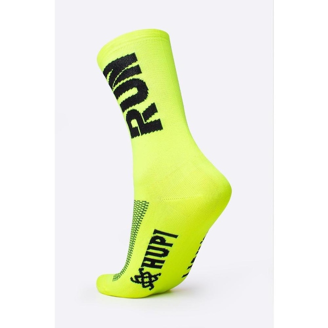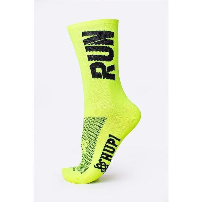 Meia HUPI Run Amarelo Neon/Preto Meia para ciclismo e corrida!