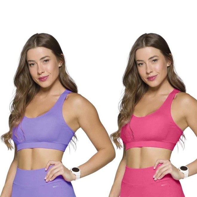 Kit Tops Fitness Selene Canelado sem Costura - Feminino - 2 unidades