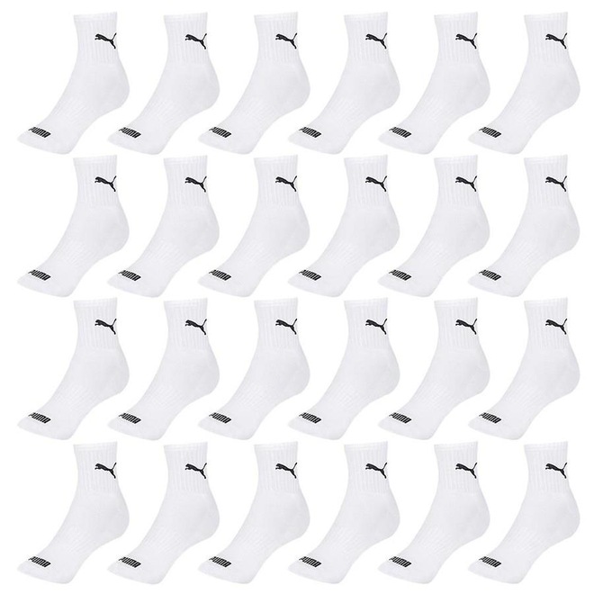 Com o Kit 24 Pares de Meia Cano Médio Puma Esportiva, você garante o conforto durante os treinos e práticas de atividades físicas. Desenvolvida com a leveza do algodão e elasticidade da poliamida, as peças possuem toque macio, reforço no calcanhar e na ponta, oferecendo alta durabilidade e melhor ventilação. Traz logo da marca em contraste no tornozelo, e elástico central para ajuste perfeito aos pés. Medidas aproximadas cm: 34-39: 17x11 (Comprimento do Pé x Largura).