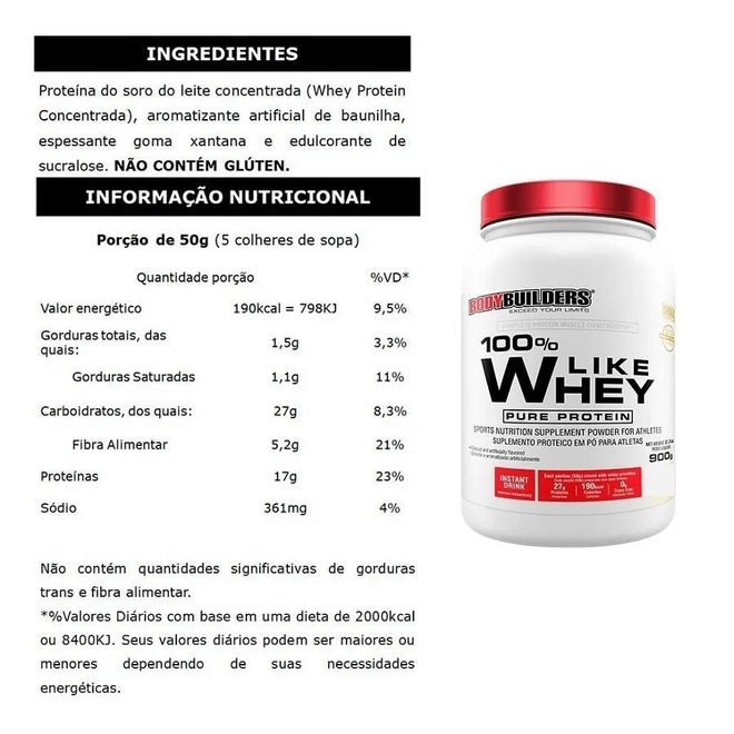 100% Like Whey Protein: Adicionar 50g em 300ml de água.