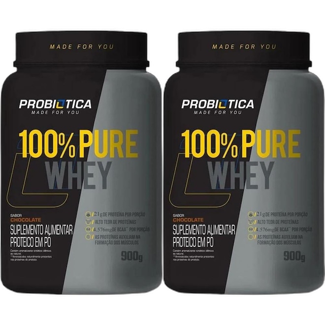 100% PURE WHEY® é o suplemento proteico campeão de vendas Probiótica, composto basicamente por proteína concentrada do soro do leite (whey protein concentrate), matéria-prima elaborada com alta tecnologia e com elevada concentração de aminoácidos. De preparo instantâneo, 100% PURE WHEY® é indicado para ser tomado antes e/ou após os exercícios.