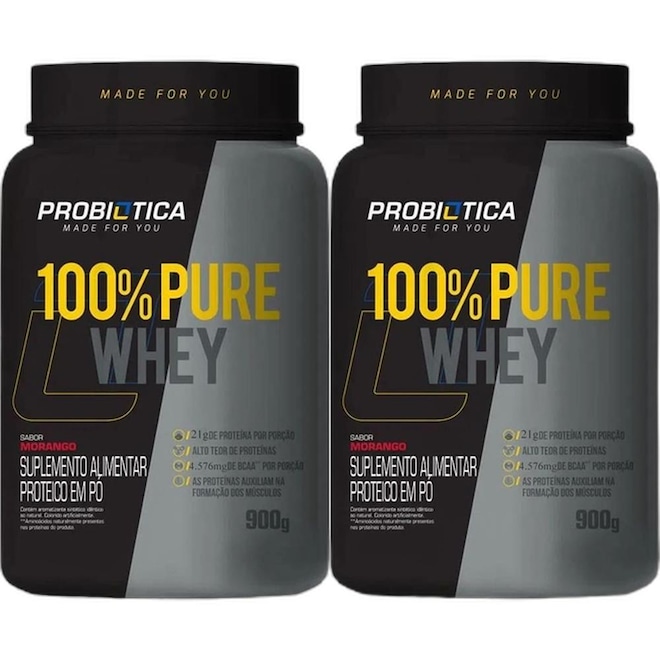 Descrição - 100% Pure Whey Nova Fórmula - 900g Morango - Probiótica
