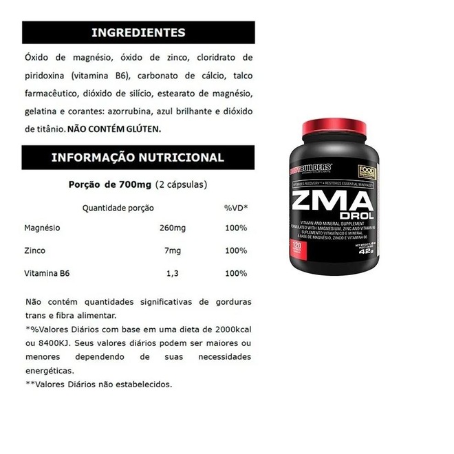 O ZMA DROL é um suplemento vitamínico e mineral à base de magnésio, zinco e vitamina B6. Contém formas exclusivas e fórmula revolucionária que combina concentrações específicas dessas substâncias, as quais ajudam a aumentar os hormônios anabólicos, recuperação, cicatrização, manutenção de tecidos, crescimento muscular e força. Por causa da eficácia no aumento dos níveis de testosterona, esse suplemento é utilizado por milhares de atletas em todo mundo como uma alternativa segura e natural de pró-hormônios.
