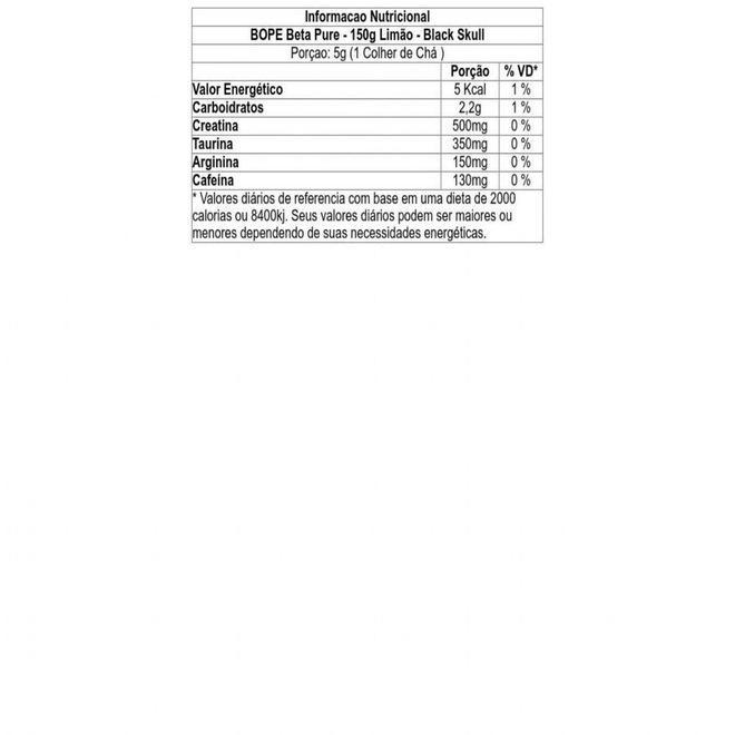 Ingredientes - BOPE Beta Pure - 150g Limão - Black Skull