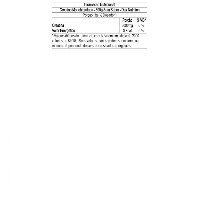 Ingredientes - Creatina Monohidratada - 300g Sem Sabor - Dux Nutrition