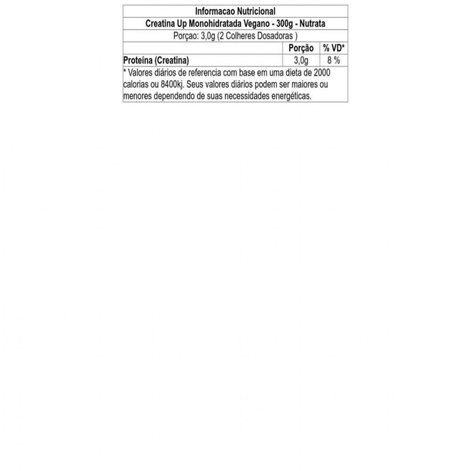 Descrição - Creatina Up Monohidratada Vegano - 300g Natural - Nutrata