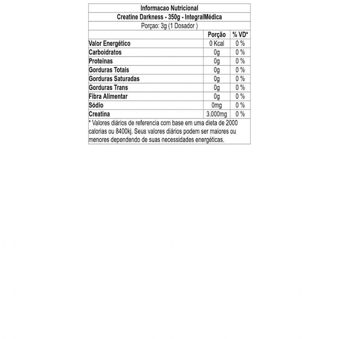 Ingredientes - Creatine Darkness - 350g - IntegralMédica