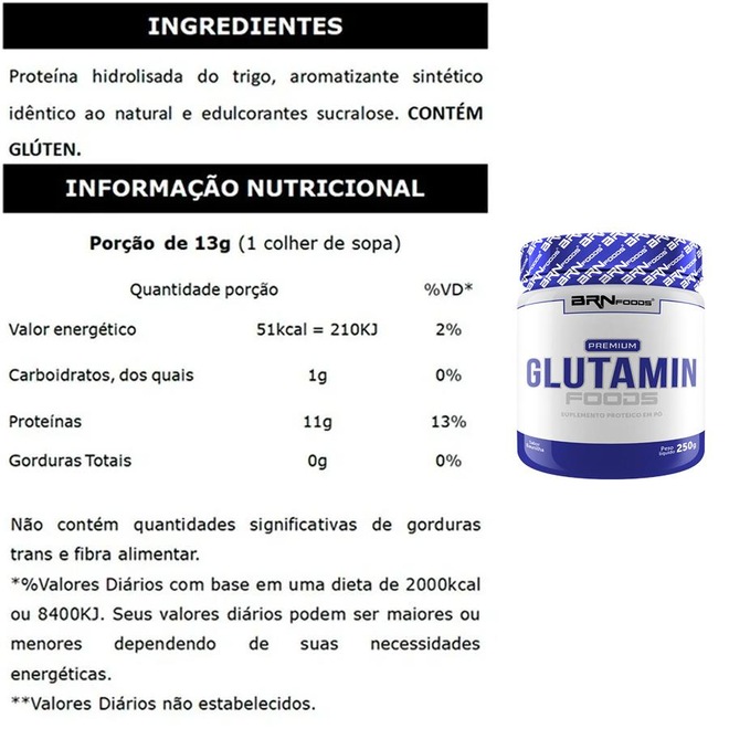 O que compõe o kit: 2x Whey Fusion: Pote de 900g 2x Bcaa: Pote de 100g 2x Creatina: Pote de 100g 2x Glutamina: Pote de 250g 1x Coqueteleira 600ml WHEY PROTEIN FUSION é composta por 7 PROTEÍNAS combinadas, cada uma com diferentes perfis de aminoácidos. Sua fórmula garante absorção da proteína por um tempo prolongado e é a solução ideal para as necessidades de proteína de qualquer indivíduo. É uma boa opção para quem quer aumentar a quantidade de proteínas na dieta BCAA FIT FOODS é indicado para ser ingerido antes e após o treino, pois fornece energia e retarda a fadiga central. Estimula a síntese de proteína muscular recuperando imediatamente os músculos danificados e prevenindo dores. A suplementação com BCAA está entre as mais importantes para qualquer programa nutricional esportivo, pois eles são indispensáveis para a manutenção e crescimento dos músculos. 100% CREATINA FOODS é formada a partir da associação de 3 aminoácidos de alto valor biológico: arginina, glicina e metionina. É usada pelo tecido muscular para a produção de fosfocreatina, fator importante na formação de adenosina trifosfato (ATP), que funciona como um repositor de energia. PREMIUM GLUTAMIN FOODS é um suplemento a base de glutamina peptídica extraída da proteína hidrolisada do trigo. PREMIUM GLUTAMIN FOODS é um módulo de L-Glutamina peptídica para nutrição enteral ou oral, ideal para atletas que treinam pesado. É o aminoácido mais abundante de forma livre encontrado no tecido muscular. COQUETELEIRA fabricada em material plástico resistente. A cor varia de acordo com a disponibilidade em estoque. SUGESTÃO DE CONSUMO: a) Fusion Whey: Adicionar 40g (4 colheres de sopa rasas) em 300mL (1 1/2 copo) de água gelada. Bater em liquidificador ou coqueteleira e consumir imediatamente após o preparo. b) BCAA: Sugere-se 1 porção de 5g (1 colher de chá) diluída em 200ml (1 copo) de água. c) Creatina: Dissolver 3g (1 colher de café) em 100ml (1/2 copo) de água, uma porção ao dia. d) Glutamina: Adicione uma porção de 13g (1 colher de sopa) em 100ml (1/2 copo) de água ou bebida de sua preferência. Pode ser consumido antes, durante ou após o treino ou conforme orientação de médico ou nutricionista. IMPORTANTE: a) Validade dos produtos: de 18 a 24 meses b) Vendemos somente produtos originais e devidamente lacrados