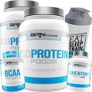 Kit BRN Foods 2x Whey Protein Isolado Morango 900g Chocolate + BCAA + Creatina + Coqueteleira