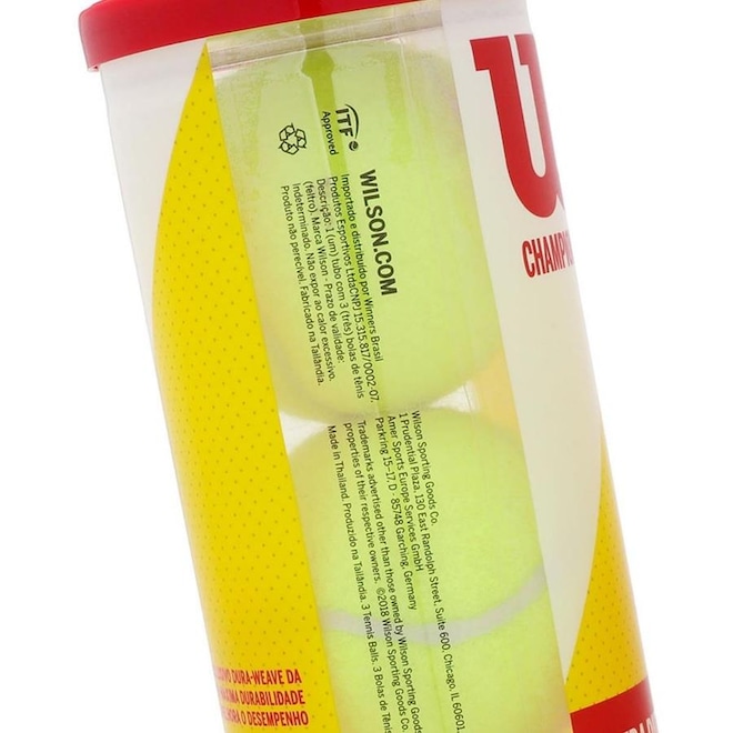 - Detalhamento: Tubo com 3 bolas, escrita Wilson 4 na bola, serve para todos os tipos de quadra, bola aprovada pela Federação Internacional de Tênis