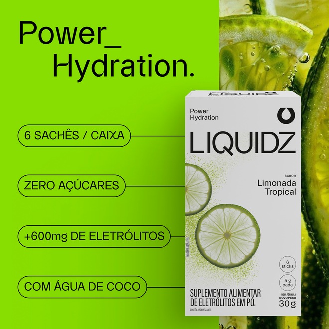 LIQUIDZ é uma solução de hidratação que combina os principais eletrólitos essenciais como sódio, potássio e magnésio. Esses minerais são fundamentais para manter a hidratação adequada, melhorar a função muscular e nervosa, e equilibrar o pH do corpo. LIQUIDZ é formulado para ser consumido diariamente, especialmente ao acordar, durante e após atividades físicas, para garantir uma hidratação eficiente e rápida.